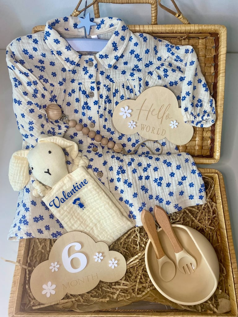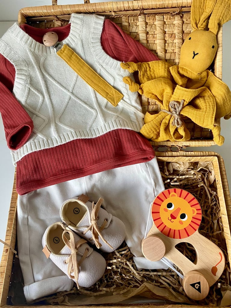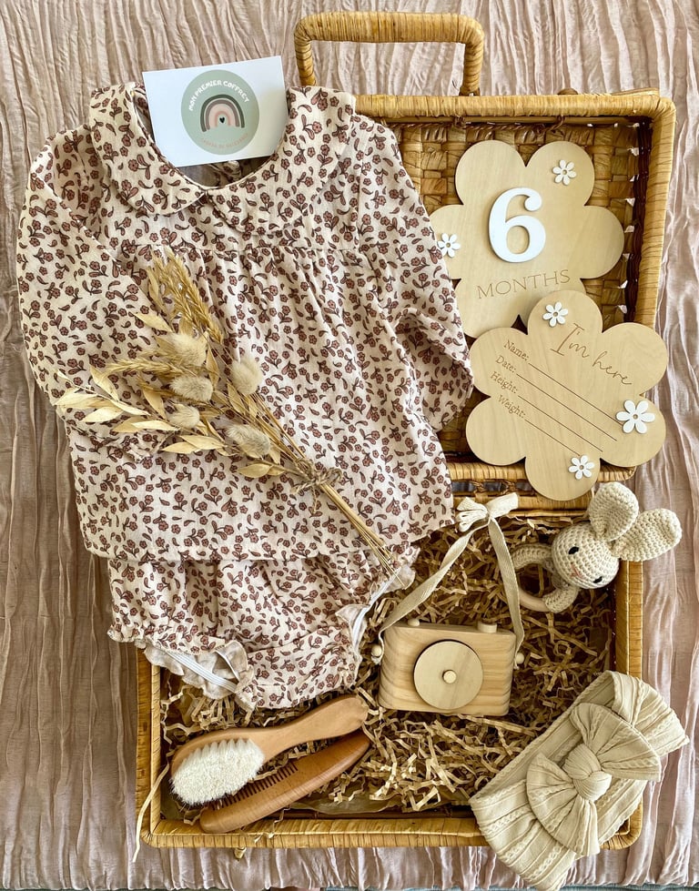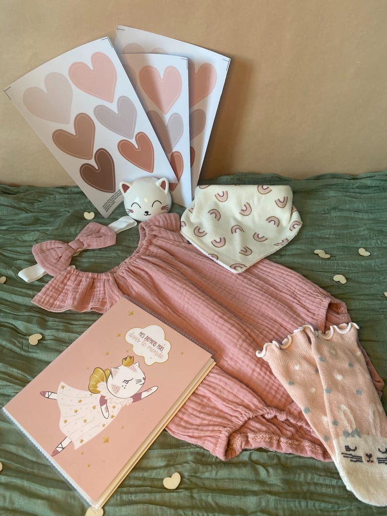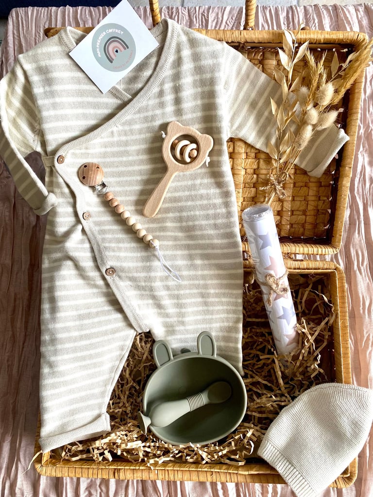 Chaque coffret inclut une sélection d'articles uniques, tels que des vêtements, des langes, des sets de vaisselle, des doudous, des hochets et autres articles en tout genre.